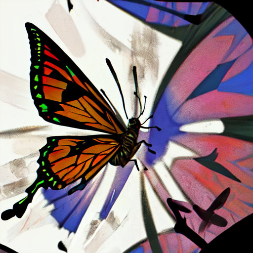 鮮やかな羽のちょうちょイラスト、教会のガラスにでもとまっているのか、いろいろ反射しているようにも見える